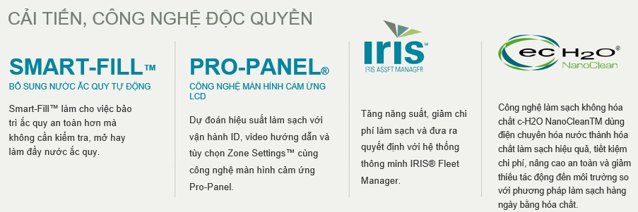 Làm sạch tới 30,000m2 mỗi giờ mà không gây xươc sàn. Tối đa hóa thời gian hoạt động với thiết kế bền chắc, dễ dàng can thiệp kỹ thuật và thay thế linh phụ kiện. Tối đa hiệu suất sử dụng tới 94 phút giữa thời gian đổ nước thải và làm đầy bình, pin sạc đầy có thể hoạt động đến 4 giờ đồng hồ. Đào tạo đơn giản và tăng hiệu quả làm việc với hướng dẫn hiển thị trực tiếp trên màn hình.