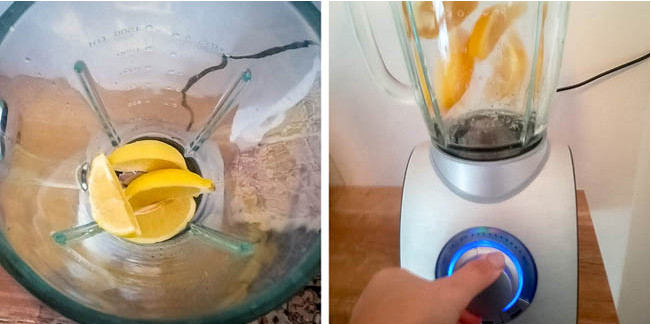 rồi cho vào máy xay và ấn nút xay trong 1 đến 3 phút. Sau đó rửa sạch bằng nước