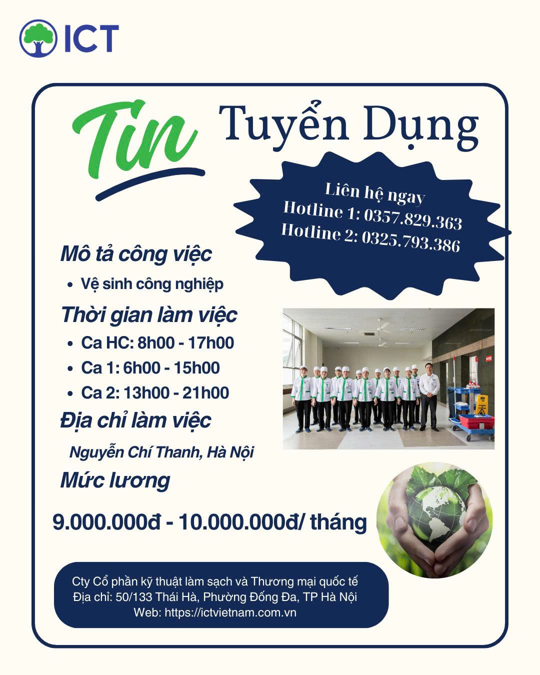 TUYỂN DỤNG CÔNG NHÂN VỆ SINH CÔNG NGHIỆP - HÀ NỘI (GẤP) T3/2026
